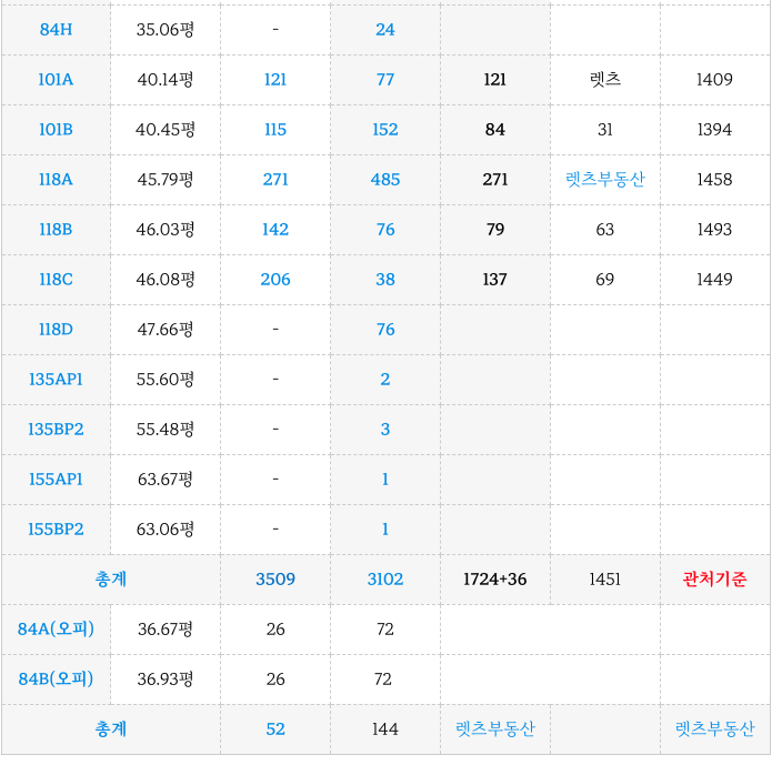 조합측의 최종 설계가 나와 타입별 세대수가 확정되면 다시 공유 드리도록 하곘습니다.