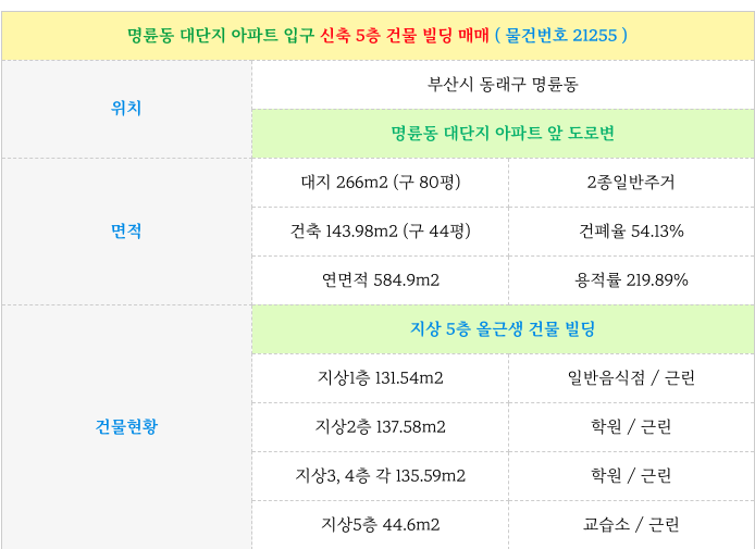 동래구 명륜동 신축 올근생 5층 건물 빌딩 매매 (No 21255)