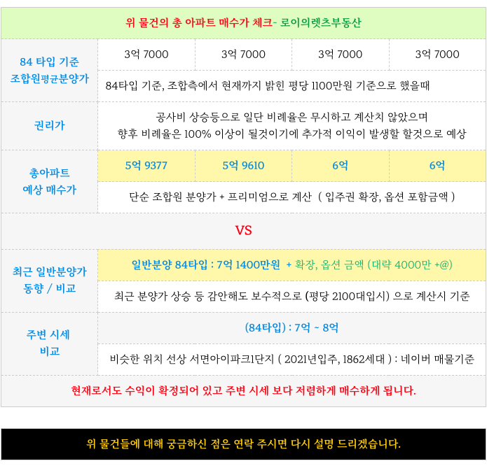 * 진행대비 시세 낮고 투자금액 상대적으로 작아 매력적인 매물 과 수익성 체크하였습니다.