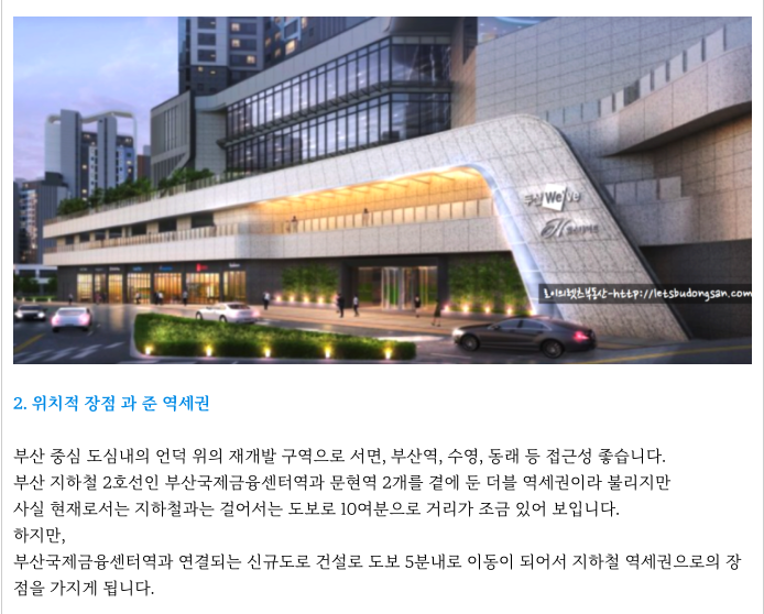 가운데 부분에서는 부산국제금융센터단지역과 직선거리 300여미터지만