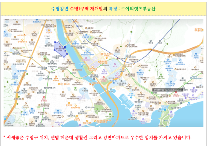 수영1구역 주요 입지적 특징 간략 재정리해 소개해 드리겠습니다.