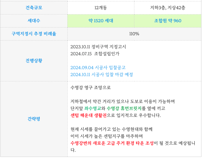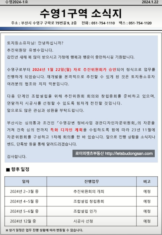 수영1구역 재개발 현재까지 일자별 주요 진행 사항 그리고 예상 일정 등 추가 정보는 아래 페이지를 참고 부탁드립니다.