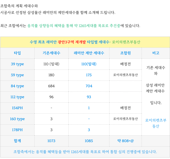 광안3구역 현재 계획된 타입별 세대수 소개해 드리곘습니다.