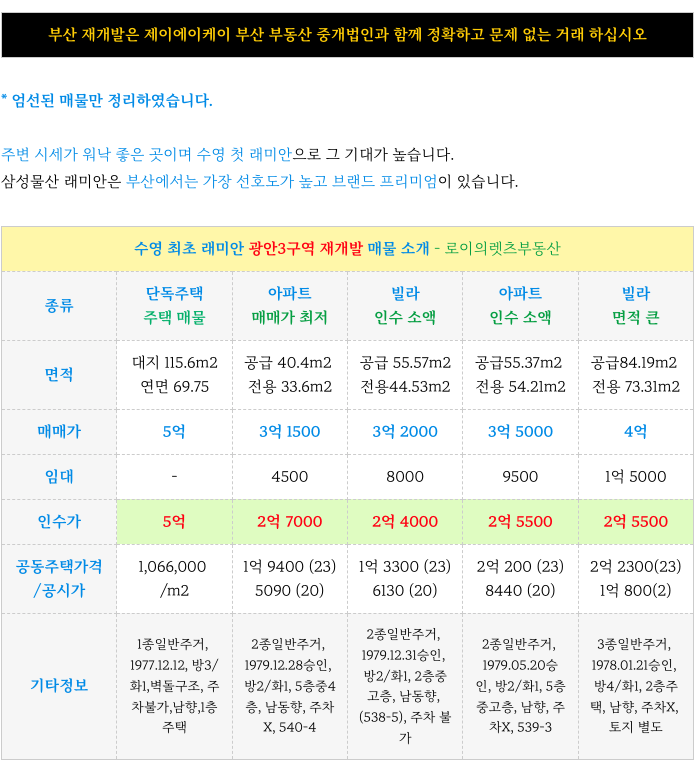 수영구의 시세가 워낙 좋아 재건축을 해도 좋은 입지라 이에 보완이 됩니다.