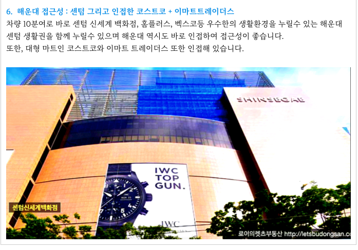 센텀의 다양한 상권과 문화 시설의 이용이 좋습니다.