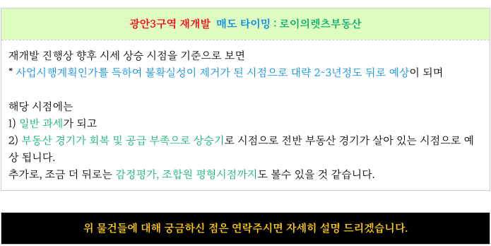 광안3구역 재개발 주요 진행 사항과 예상 일정, 절차 정리등 추가 정보는 아래 페이지를 참고 부탁드립니다.