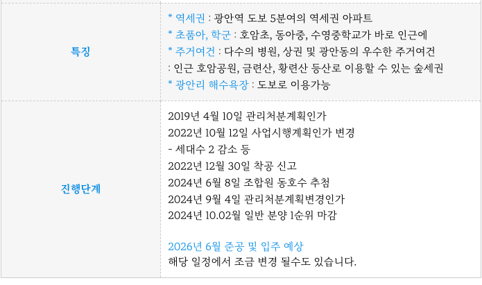 부산 지하철 2호선 광안역 역세권으로 현재 공사 중에 있어