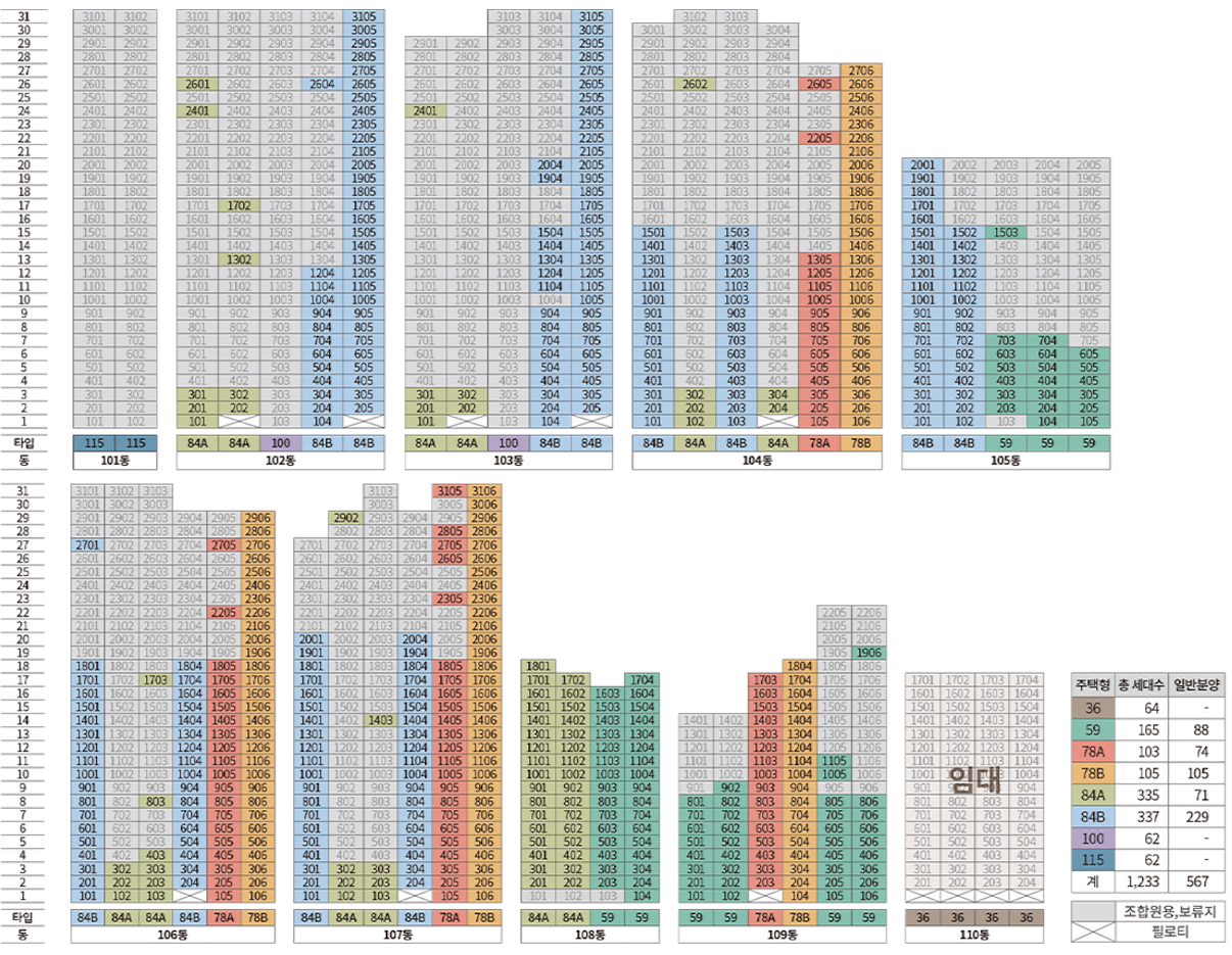 수영구 광안2구역 각 타입별 세대수와 각 분양가 정리 드립니다.