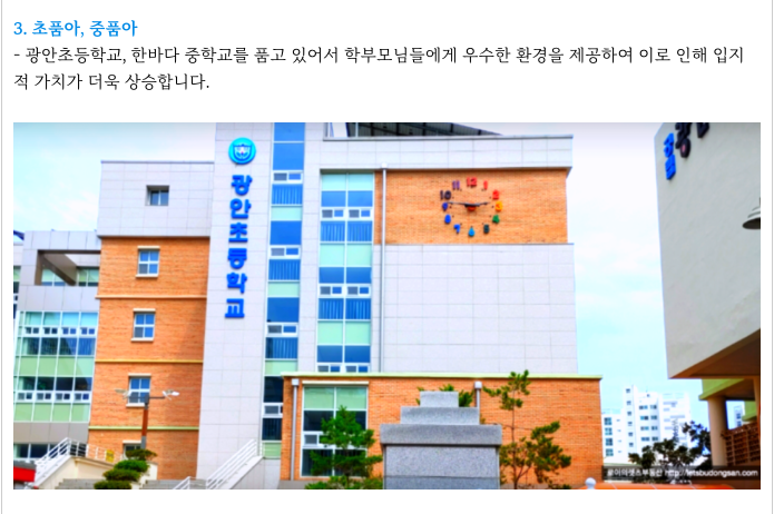 광안초등학교와 한바다중학교를 품은 초, 중품아 단지이며