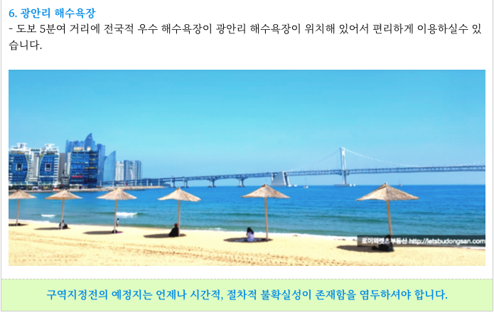 광안5의 입지는 누구나 동의하는 곳이며 구역 지정도 임박하여 상대적 불확실성도 작은 곳 입니다.