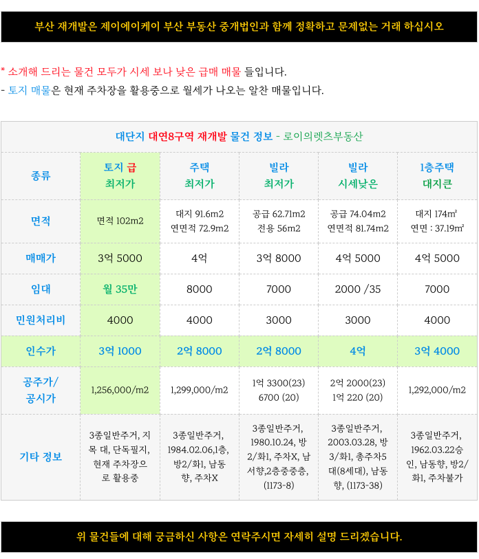 부산 전역 재개발에 대해 궁금하신 점은 방문 또는 연락주시면 자세히 설명 드리겠습니다.