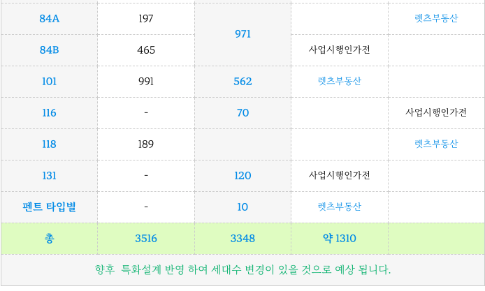향후, 시공사와 협의 하여 설계변경등을 진행하고 세대수 변경이 있을 것으로 보여