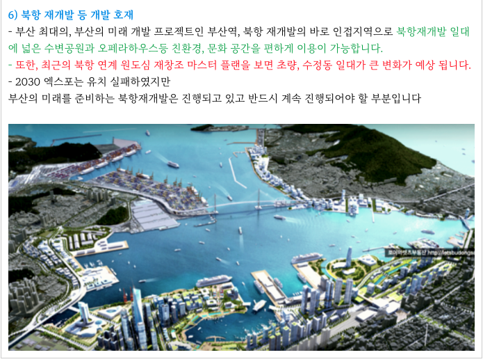 부산에의 미래를 담보하고, 가장 큰 변화가 있을 북항재개발 인접 지역으로