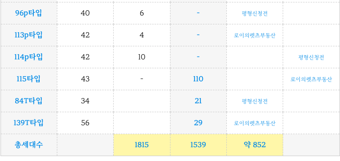 향후, 84타입 이상 세대수 늘리는 설계변경을 계획하고 있어 일부 세대수 변경이 있을 예정입니다.