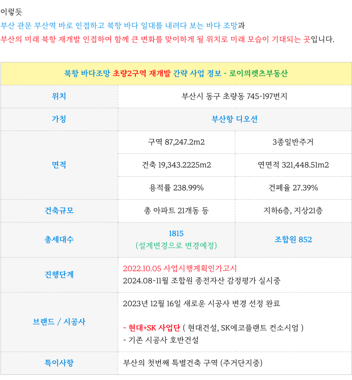 대단지 초량2구역 현재까지의 주요 진행 사항 & 향후 절차 등 추가 정보는 아래 페이지를 참고 부탁드립니다.