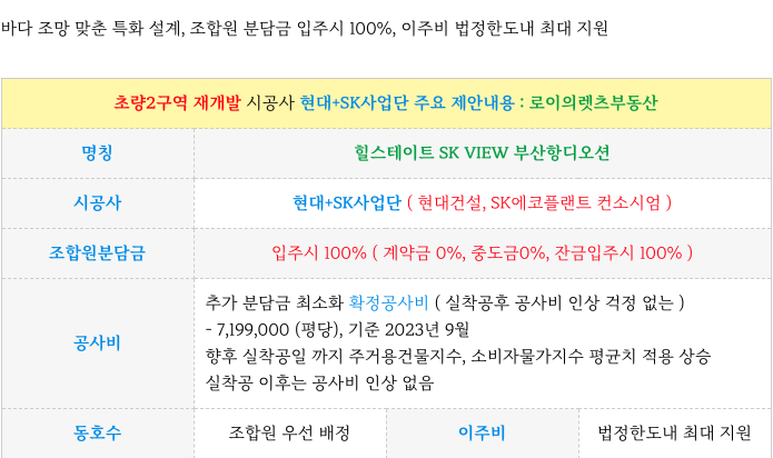 초량2구역 재개발 시공사 현대 + SK 사업단 주요 제안 부분 정리하였습니다.
