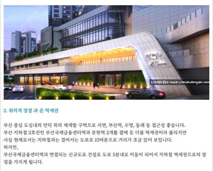 가운데 부분에서는 부산국제금융센터단지역과 직선거리 300여미터지만