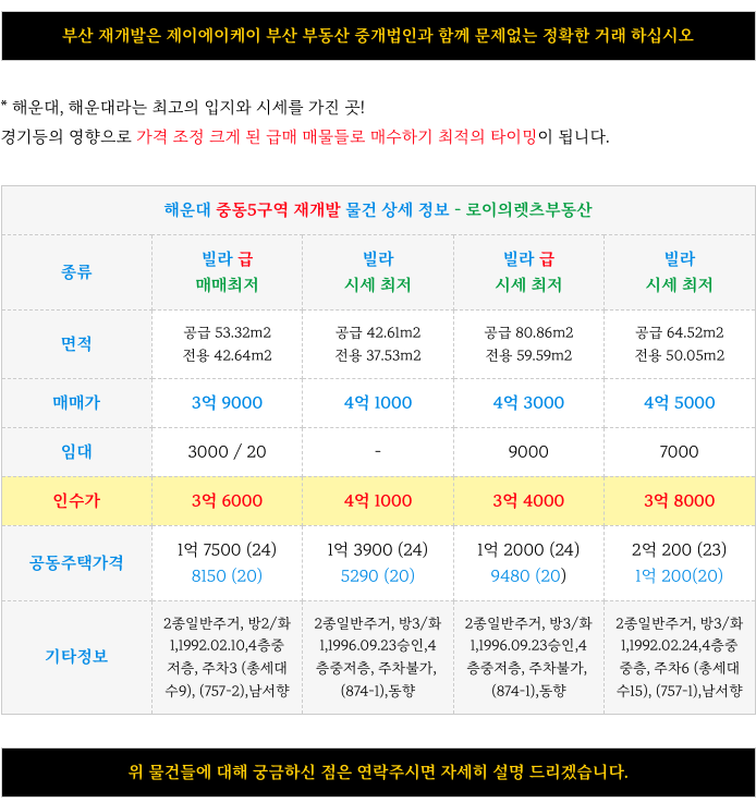 아크로 해운대 - 중동5구역 재개발 : 새롭게 접수된 급매 빌라 매물