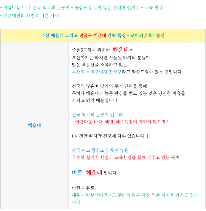 남다른 태생 해운대 중동