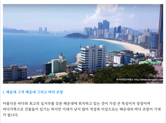 + 해운대 일대는 부지 확보가 쉽지 않아 대부분 주상복합 또는 소규모 단지가 많으며