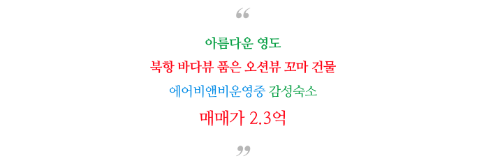 (에어비앤비) (매 2.3억) 영도 바다뷰 리모된 꼬마 건물 빌딩 주택 매매