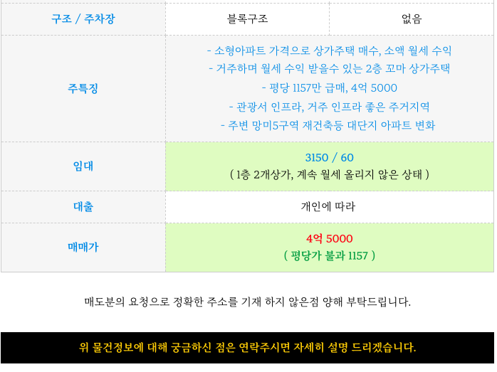 - 소형아파트 가격으로 상가주택 매수, 소액 월세 수익