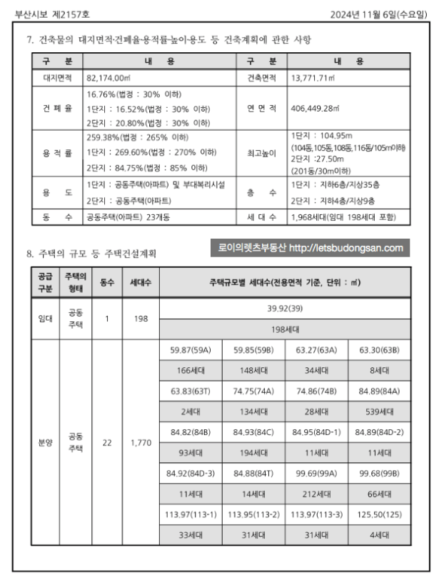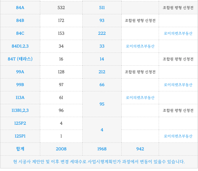 대단지 부곡2구역 사시 고시 기준 타입별 세대수 정리하였습니다.