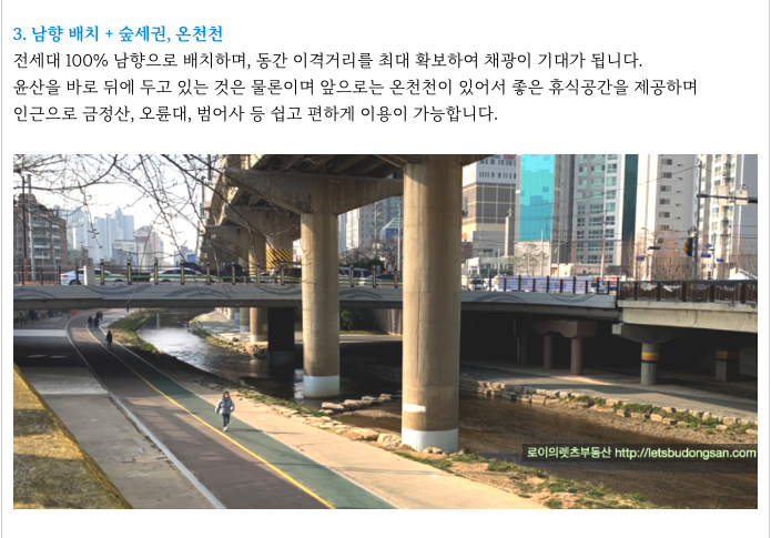 초품아, 준역세권, 숲세권, 온천천, 교통 편리
