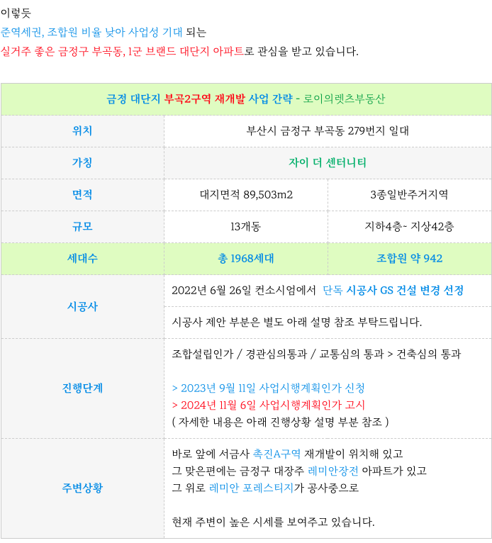 부곡2구역 재개발 GS 건설 주요 제안 부분 소개해 드립니다.