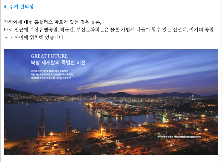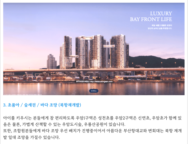 - 초품아, 숲세권, 가격경쟁력, 바다 조망 (북항재개발)