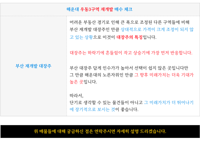 [해운대 재개발] 우동3구역 : 최저 매물 & 임시총회 소식과 진행 일정
