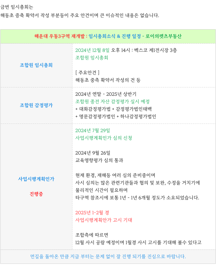 우동3구역 재개발 : 가능 최저 매물 & 임시총회소식과 진행일정 그리고 정리해 드리겠습니다.