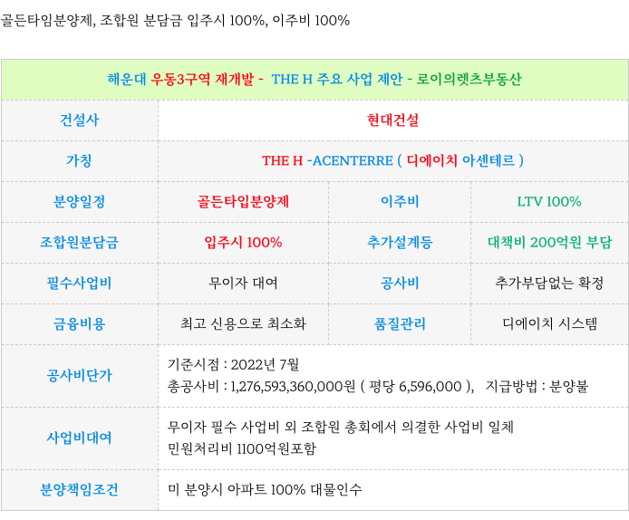 부산 최초의 하이엔드 브랜드 THE H 적용으로 자타공인 부산 재개발 대장 입니다.