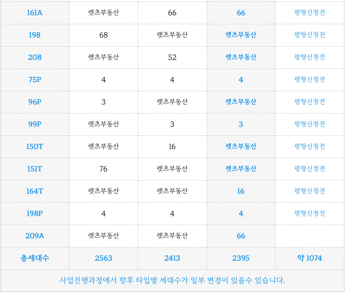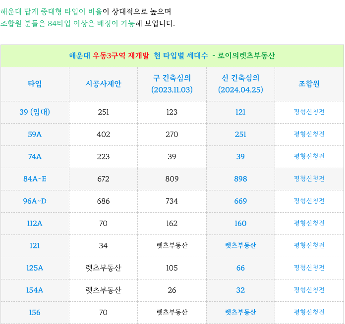 우동3구역 재개발 계획된 각 타입별 세대수 정리하였습니다.