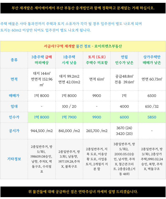 [ 부산, 양산 / 상가 / 주택 / 재개발 / 재건축 전문으로 신속하고 정직하게 거래 합니다. ]