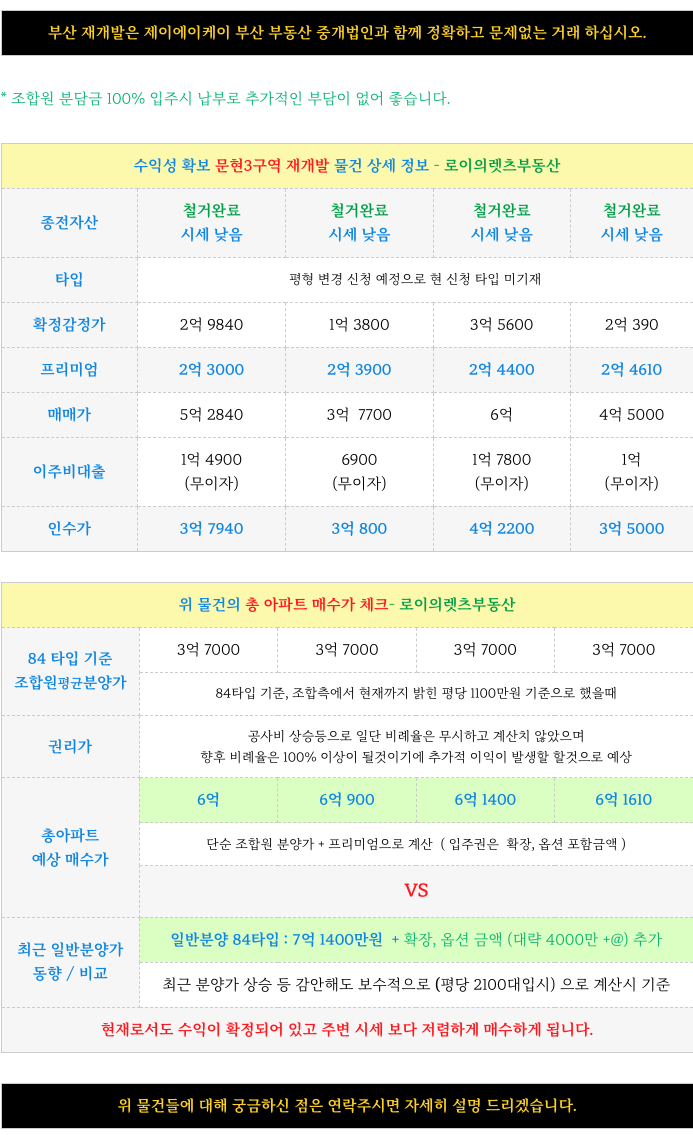 * 향후 일반 분양가 보다도 1억 이상의 큰 차익이 발행하여 입주권의 가격정 메리트가 높습니다.