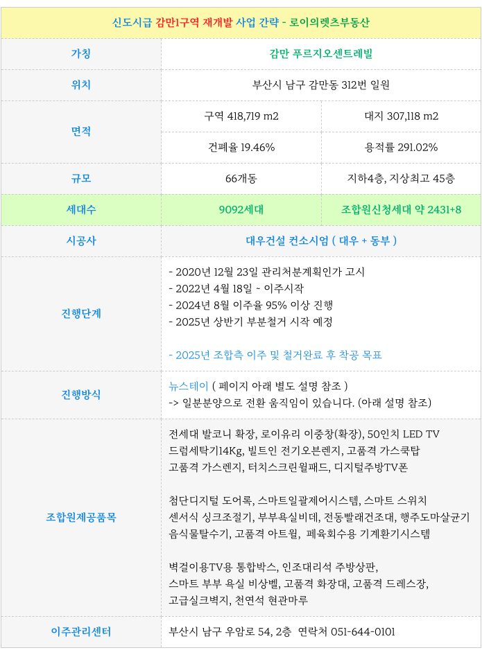 부산 전역 재개발에 대해 궁금하신점은 방문 또는 연락주시면 자세히 설명 드리겠습니다.