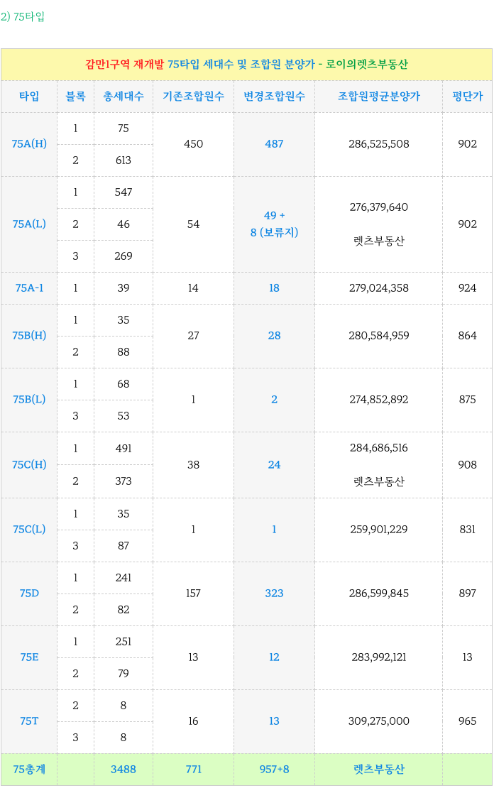 감만1구역 재개발 각 타입별 세대수 그리고 조합원 분양가 소개 드립니다.