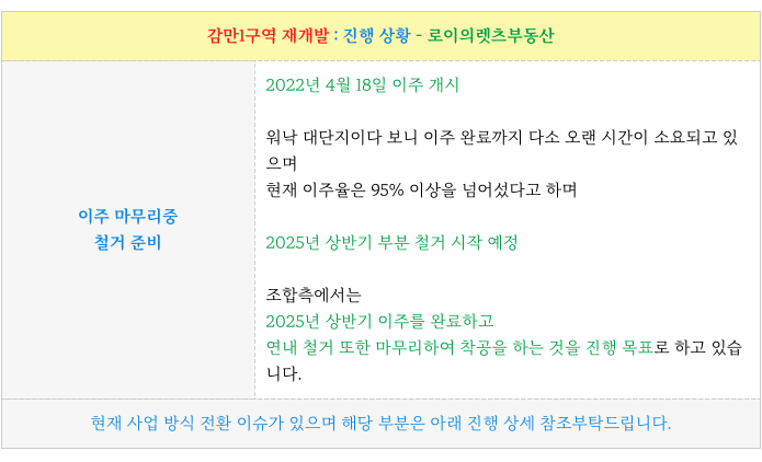 이주 마무리중 감만1구역 은 관리처분계획인가 이후 현재 이주가 거의 마무리 중에 있으며