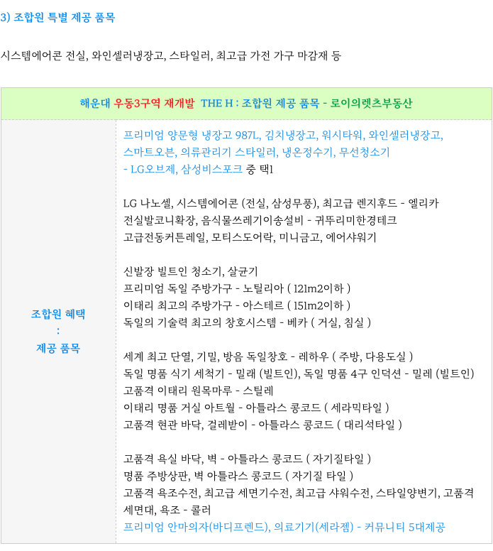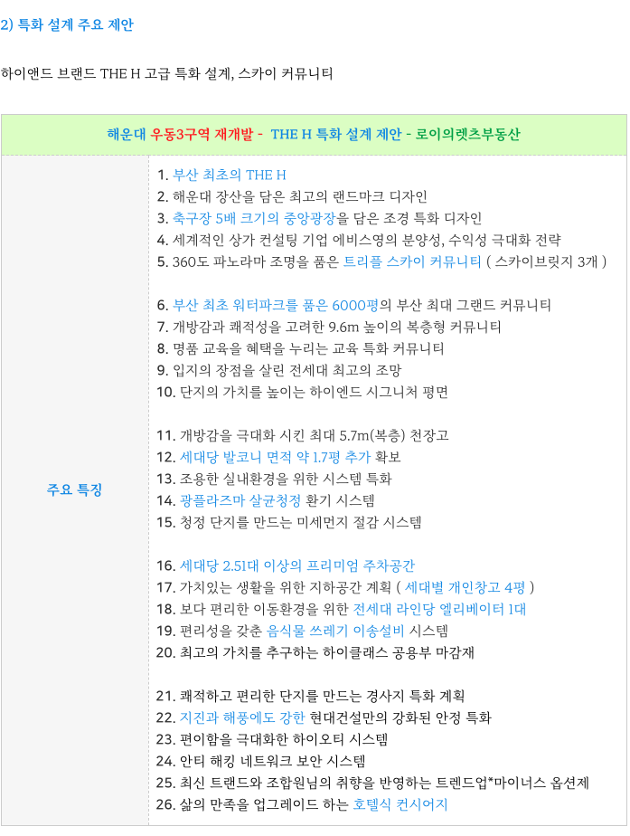 우동3구역 재개발 시공사 현대건설 주요 제안 부분 정리하였습니다.