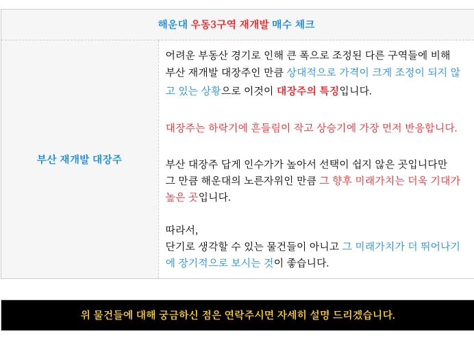 부산 전역 제개발에 대해 궁금하신 점은 방문 또는 연락 주시면 자세히 설명 드리겠습니다.