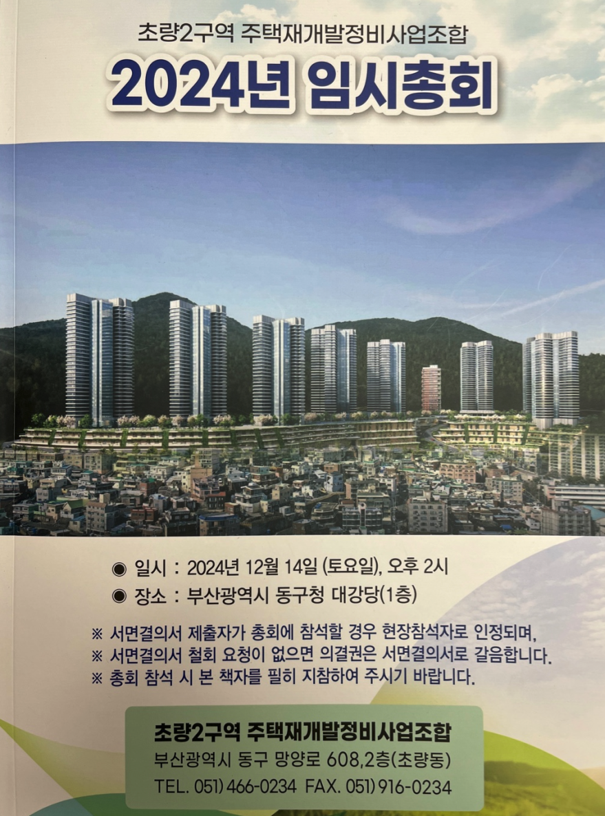 초량2구역 최근 총회 소식 및 진행 일정 그리고 현 급매 소액 매물 소개해 드리겠습니다.