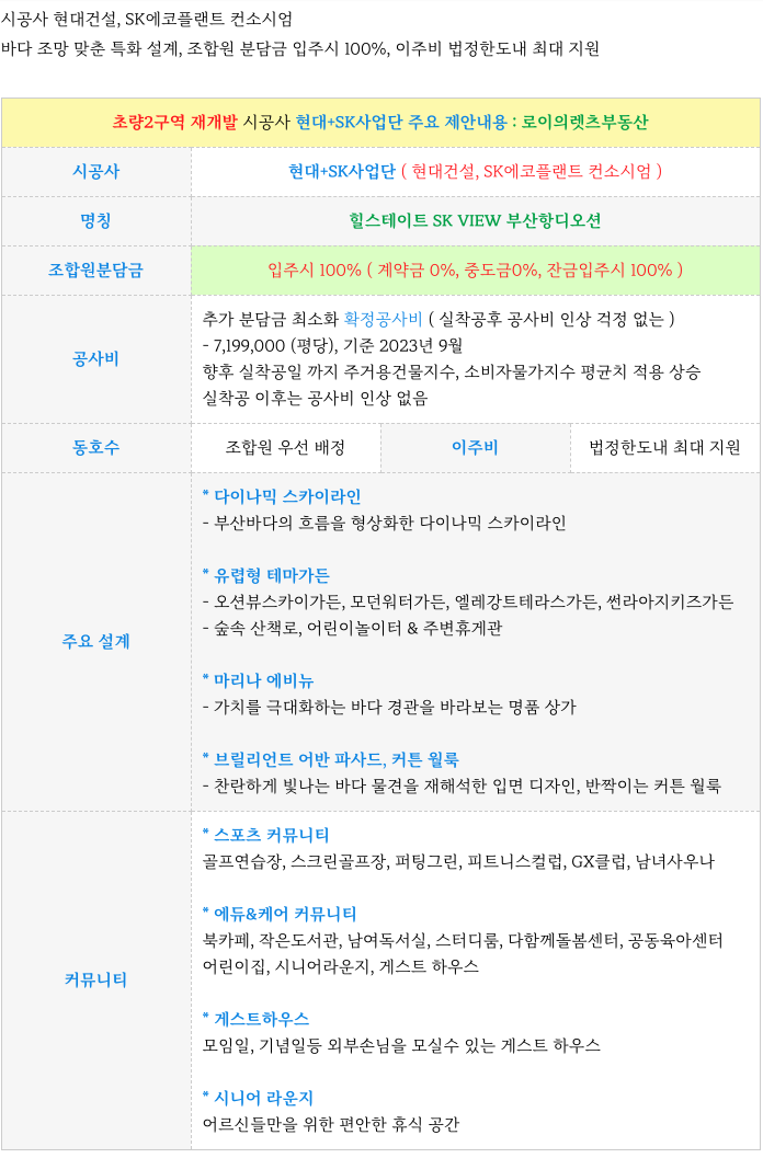 초량2구역 재개발 새로운 시공사의 주요 제안 소개해 드리겠습니다.