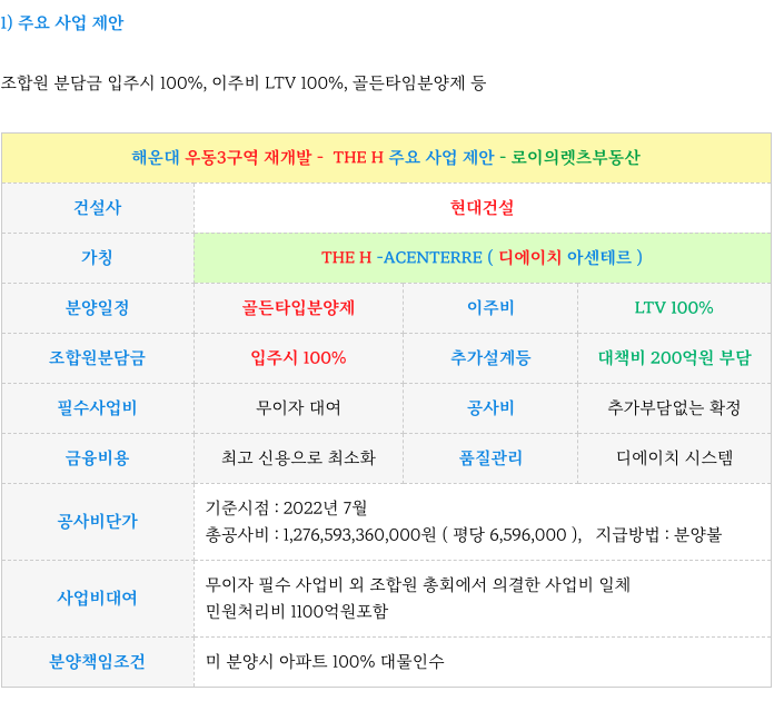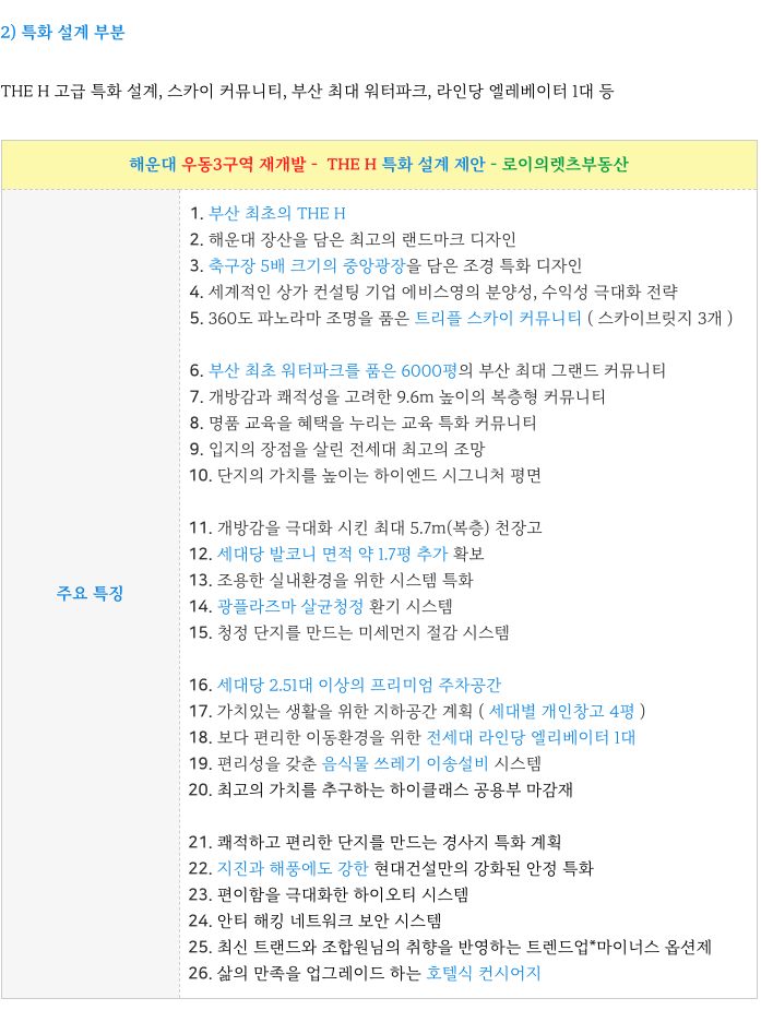 우동3구역 재개발 시공사 현대건설 THE H 주요 제안 소개해 드리겠습니다.