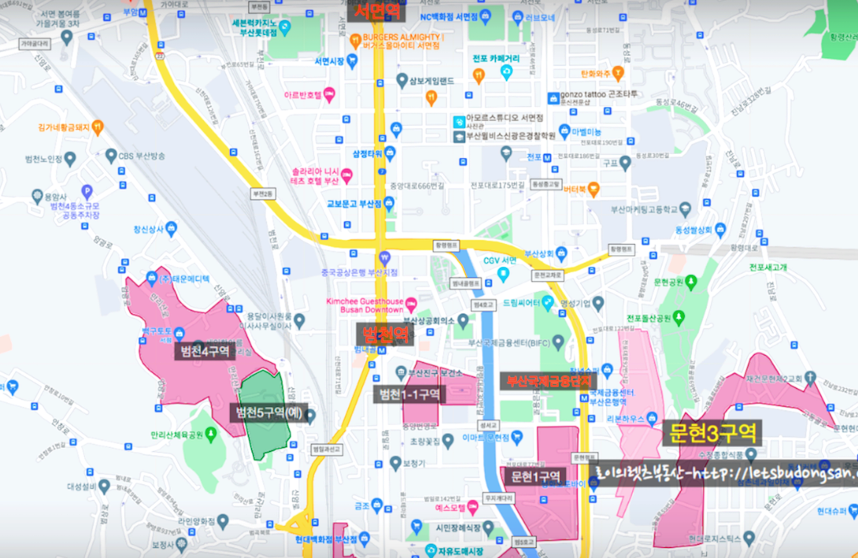 커넥트현대 (구 현대백화점), 부산 진시장, 자유시장, 골드테마거리등 이 위치한