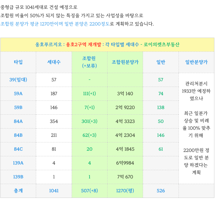 용호2구역 재개발 : 건설예정인 각 타입별 세대수 소개해 드리겠습니다.