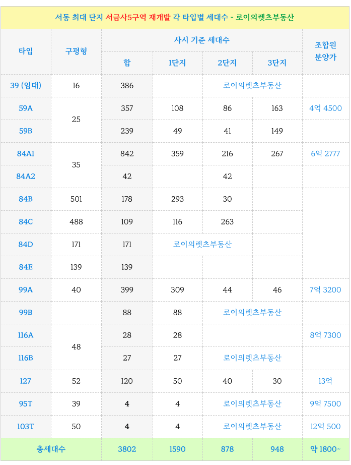 역세권 서금사5구역 각 타입별 세대수와 분양가 소개해 드리겠습니다.