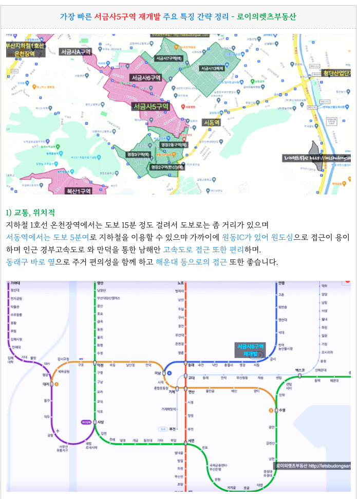 서금사5구역 재개발 주요 입지적 특징을 간략 재정리 하였습니다.