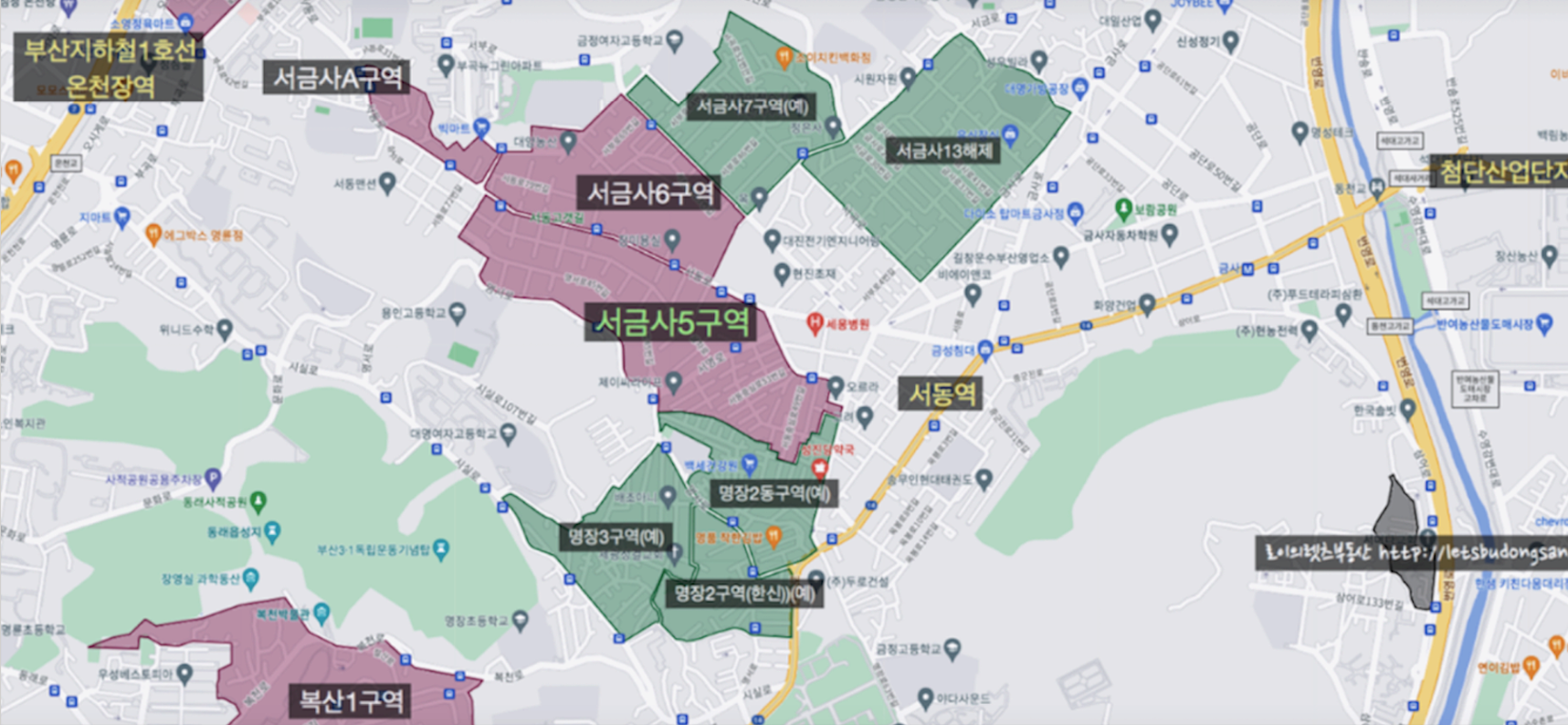 옆으로 서금사6, 아래로 명서1구역 까지 맞붙어서 재개발 진행 중으로