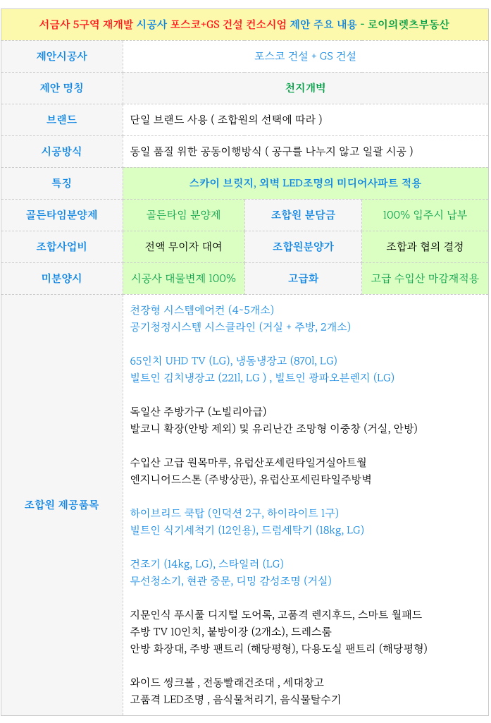 - 시공사 : 포스코건설 + GS 건설 컨소시엄